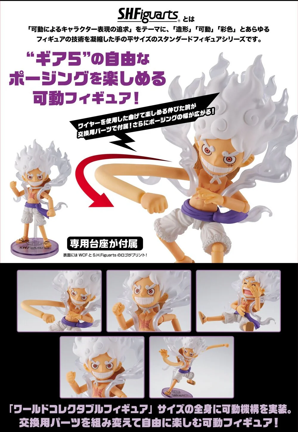 日本 BANDAI SPIRITS 旗下景品品牌 BANPRESTO 的人氣系列「WCF」與收藏玩具事業部 TAMASHII NATIONS 之可動人偶品牌「S.H.Figuarts」強強攜手,打造出自《ONE PIECE》的最新商品「[SHF]《海賊王》五檔路飛 [WCF x SHF] 」